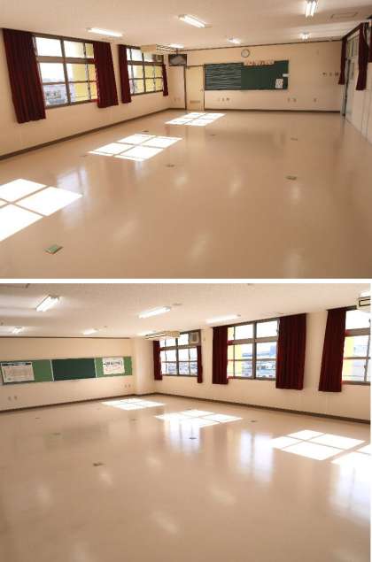 管理作業員さんが、音楽室の床を磨いてワックスをかけてくれました。着々と新年度の準備ができていますよ。