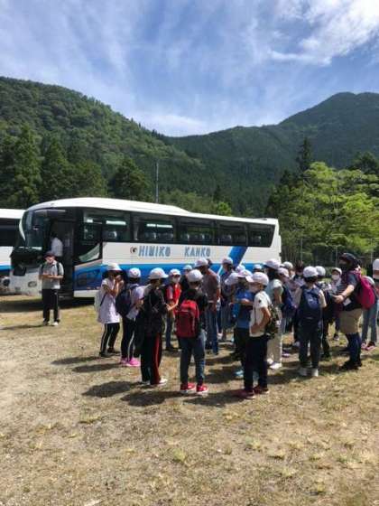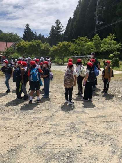 天川村に到着です。今から野外炊飯場に移動です。全員、元気です!