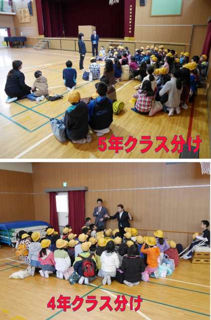 担任発表のあとは、各学年に分かれてそれぞれのクラス分けをおこないました。