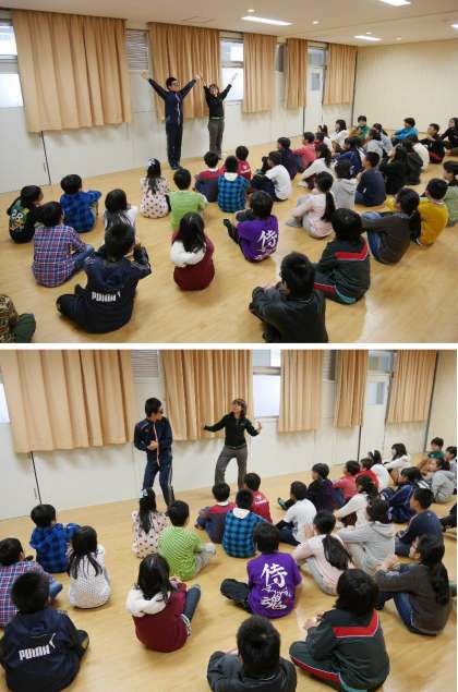 そして、担任の先生から、めざす学年の目標を楽しく紹介してくれました。リズムで皆も目標を身体になじんでいきます。