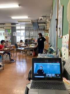 Teamsを使って、お休みしている子ども達と一緒に勉強している様子です。