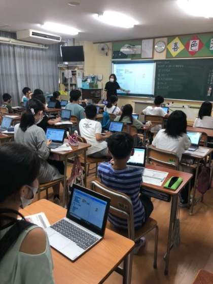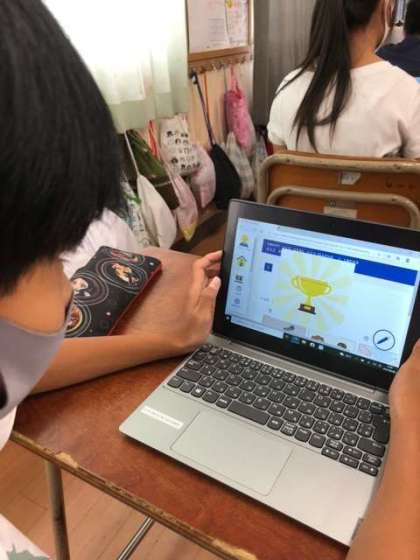 1組では、学習ドリル「navima」を使い、各教科の復習しました。正解するとトロフィーが貰え、子どもたちの意欲が高まる仕組みにもなっています。