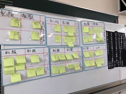 「話し合って考えを深めよう」という学習で話し合い活動を行いました。「通学する時は制服がいいか、私服がいいか」という話題で、それぞれの立場で意見を出したり、異なる立場の人に質問を出したりしました。話し合いを通して、制服や私服の良いところ、困るところについて自分たちの考えを深めることが出来ました。