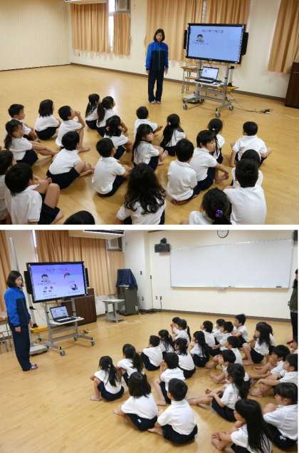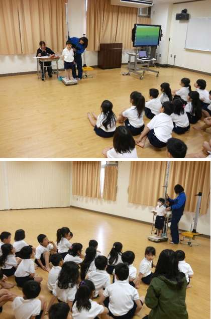 1年生の発育測定をおこないました。保健室の先生から、やさしく保健室のつかいかたも教えてもらいました。