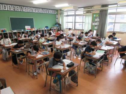 総合的な学習の時間を使って、自然災害や防災についての新聞を作り始めました。教科書や一人一台端末を使って、自分なりに調べています。一つの新聞を完成させるために、一人一人が意欲的に学習に取り組んでいます。全員完成するのが今から楽しみです。