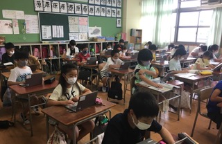 教科書や一人一台端末を使って調べ学習をしてまとめています。