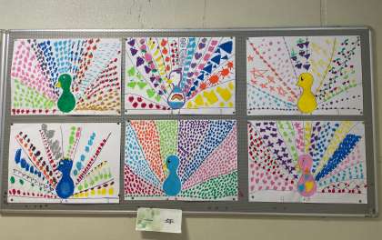 図画工作科の時間にクレパスを使って、くじゃくを描きました。