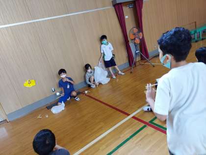 1組も2組も、体育館で、素敵に仕上げたわなげで楽しく遊びました!