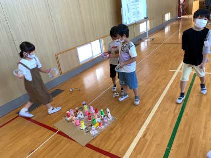 生活科のおもちゃづくりの学習でわなげをグループでつくりました。
