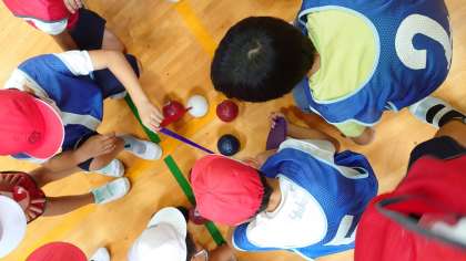 3年生は体験学習として、ボッチャ体験をしました。重度の障害をもっている人でも楽しめるスポーツということで、初めてでもとても楽しく活動できました!