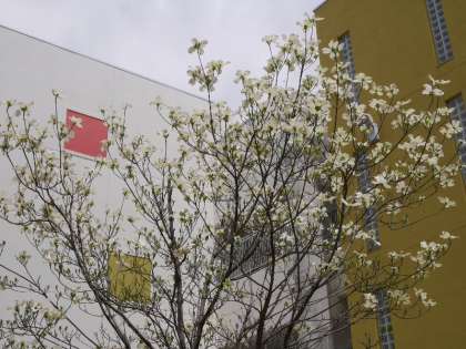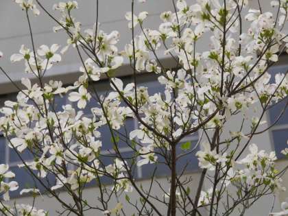 暖かくなってきて、中庭のはなみずきがきれいにさいてきましたね。