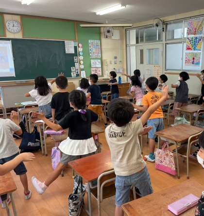 Teamsで応援団のレクチャービデオをみて、教室で一緒にダンスの練習をしました。応援団を盛り上げるように何度も練習しています。