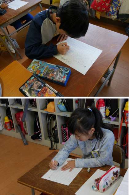 焼野小学校では昨年から、全校朝会での校長先生のお話など、学級で100字にまとめて書く取り組みをしてきています。今朝の環境のお話を子どもたちが100字にまとめています。真剣にがんばっていますね。