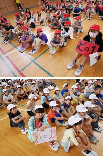 たてわり班で児童集会に集合!6年リーダがんばれ その3