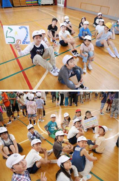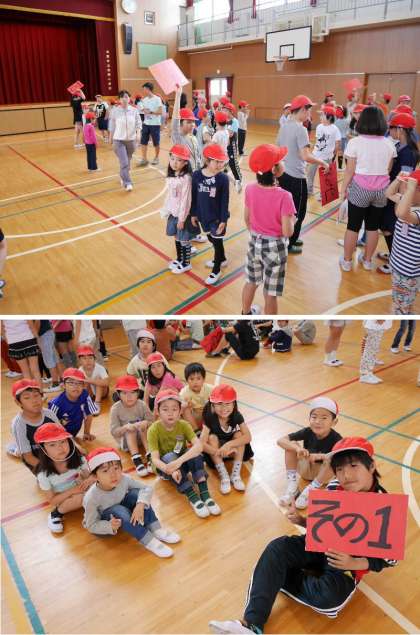 たてわり班で児童集会に集合!6年リーダがんばれ その2