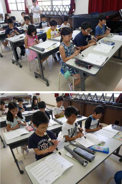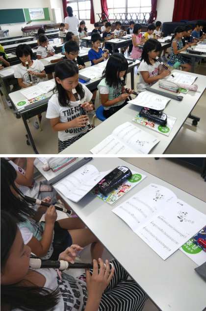 4年生の音楽の授業でリコーダを練習していました。楽譜をみながら、次々と曲を演奏しています。しっかりと真剣に演奏できていました。