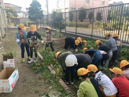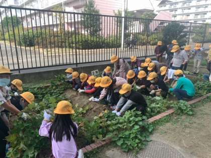 11月5日の3・4時間目に、2年生全員で学習園で育てていたお芋を掘りました。
