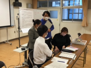 授業をされた先生の反省や、グループミーティングを経て、他校からお呼びしている先生に、本日の授業についてご指導をいただきました。このようにして教員が学びあい、授業のスキルアップを目指しています。