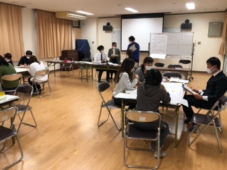 先ほどの5年1組の研究授業のあと、教員同士で授業について話し合う「研究討議会」が行われました。