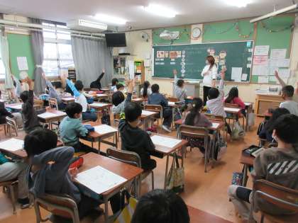 栄養指導の先生から、「よく噛んで食べると良いこと」を教えてもらいました。1口で30回以上噛むとよいことを知り、給食ではよく噛むことを意識して食べていました。