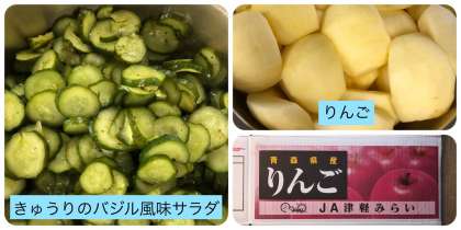 りんごは、1人1/4切ずつです。今日のりんごは青森県産のものです。