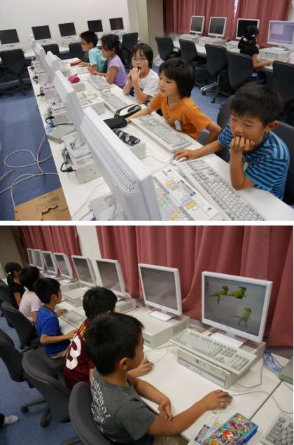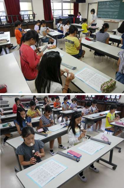 今日は2回めのクラブ活動です。ダンス部はステップをみんなでがんばってます。パソコンアート部はパソコンで絵を描いています。ミュージック部はリコーダで少年時代を演奏しています。