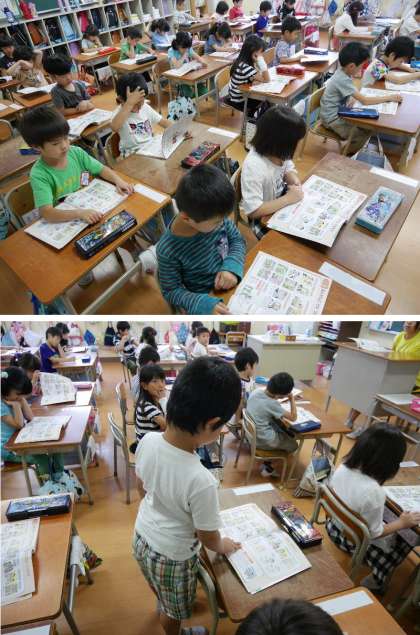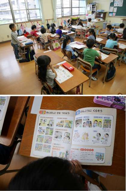 1年の生活科の授業です。「あんぜんにきをつけよう」のところを教科書で学習しました。日頃にどんなことに注意していますか。交通安全をしっかりと守りましよう。