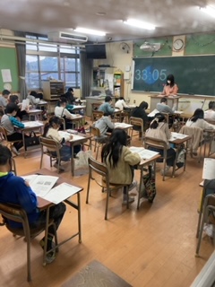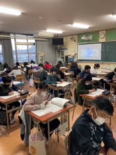 2時間目に国語、3時間目に社会が行われました。テストに取り組む表情は真剣そのものです。