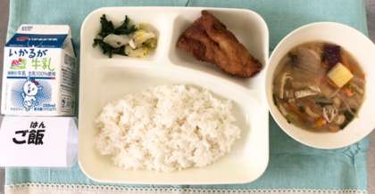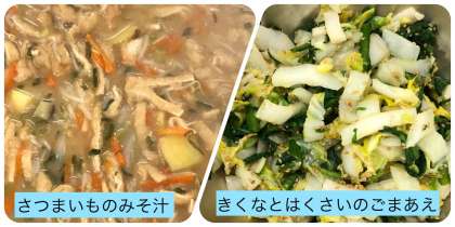 今日の献立は、たらフライ・さつまいものみそ汁・きくなとはくさいのごまあえ・ごはん・牛乳でした。