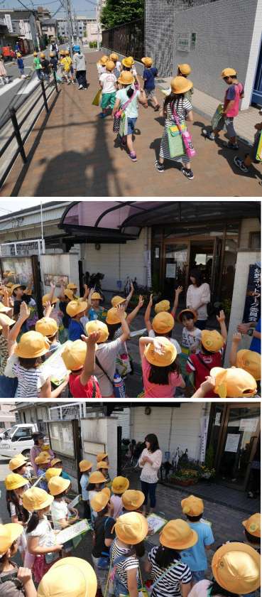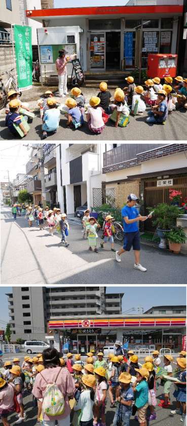 今日は、2年生が校区の探検にでかけました。校区の地図をもって、行ったところにしるしをつけていきます。学校を出発して、焼野福祉会館にいきました。地域の方に説明をお聞きしました。ありがとうございます。そして、さくら公園、郵便局、迎賓館交差点のコンビニにいきました。