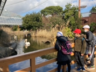 バードショーやペリカンショーが始まります。相談しながら、楽しく見学しています。