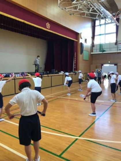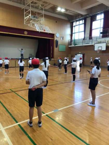 放課後、池川先生に4〜6年生の希望者を対象になわとび教室を開いていただきました。