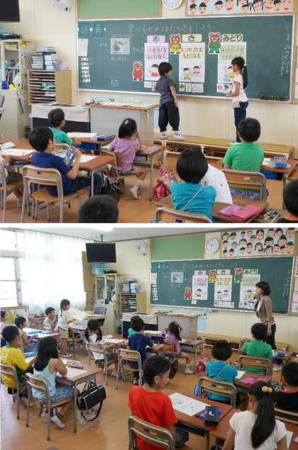 鶴見区の栄養教諭先生にきていただき、2年生で栄養指導をおこなっていただきました。今日は「食べ物のはたらきを知ろう」ということで、赤色「体をつくるもとになる」、黄色「熱や力のもとになる」、緑色「体の調子を整える」の食べ物について学習しました。