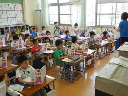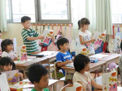 国語の教科書を読んでいます。役になりきって、しっかりと音読できていましたね。