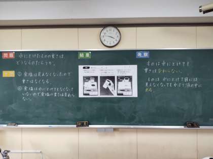ものは水にとけても重さは変わらず、目には見えなくなっても、水よう液の中にあることが分かりました。