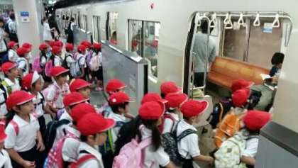 地下鉄に乗って行きます。長堀橋で乗り換えて。扇町まで行きます。