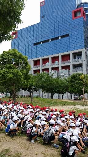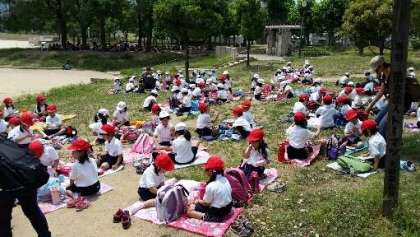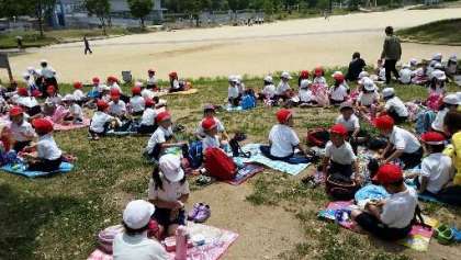 キッズプラザの横の扇町公園でお弁当をいただきます。おいしいお弁当ありがとうございます。