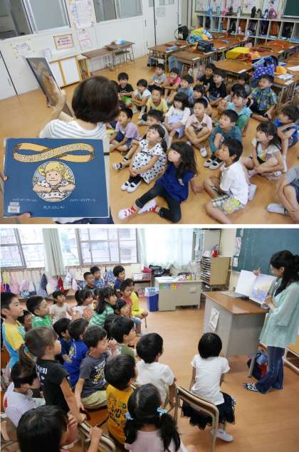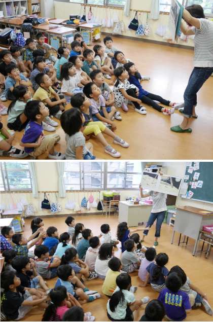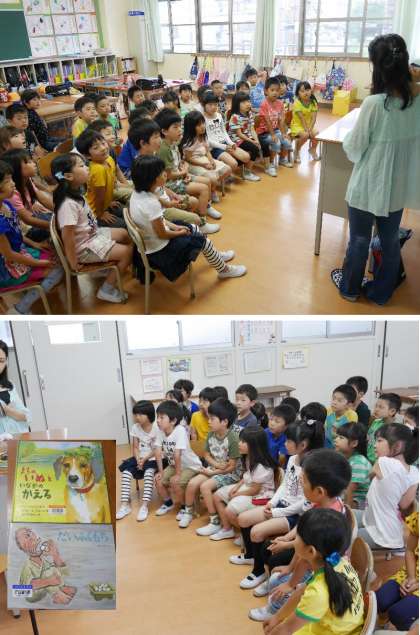 今日から、図書ボランティアさんによる読み聞かせが始まりました。1年生は初めての読み聞かせですね。身をのりだして、聞いている子もいます。「あれは・・」と声がでるほど熱心に聞いてくれていました。「わゴムは、どのくらいのびるかしら?」「まちのいぬと、いなかのかえる」「だいふくもち」を読んでいただきました。