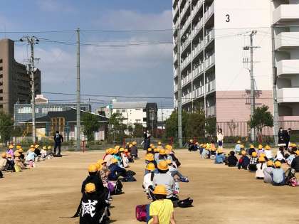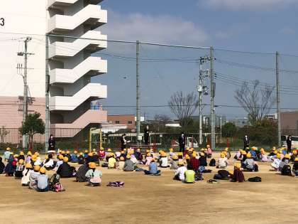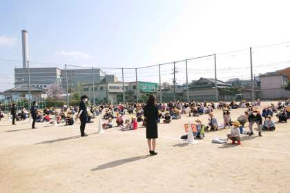 講話の後、校長から子どもたちに教職員の紹介と学級担任の発表をしました。