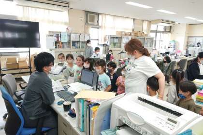 校長室や職員室の中のようすを見ています。