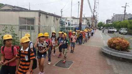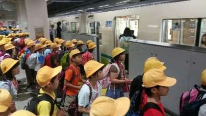 校外学習に3年4年生が出発します。地下鉄で大阪港まで行きます。途中、森ノ宮駅で乗り換えます。