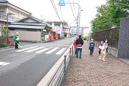 地域の見守り隊の方が、毎朝子どもたちの登校を見守っていただいています。