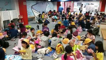 雨が降ってきました。マーケットプレイスの地下でお弁当を食べています。