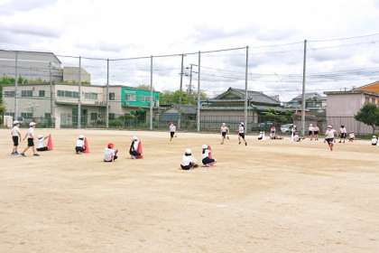 体育科の時間は、コーンとコーンの間を、いろいろなスタートの仕方で走りました。