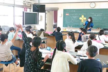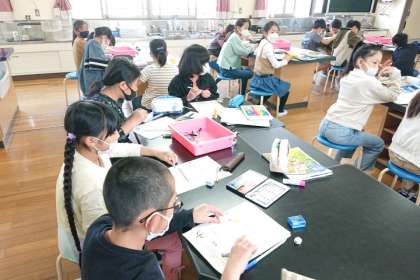 理科の時間は、アブラナの花のどの部分が実になるのか観察をして調べました。