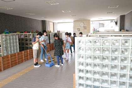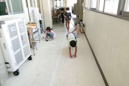 子どもたちが一生懸命そうじをしています。