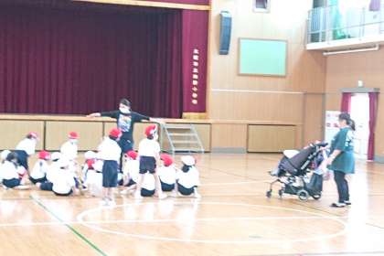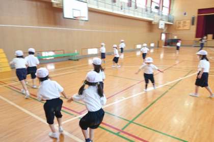 体育科の時間は、体育館でみんなでおにごっこをしました。
