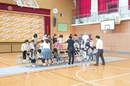 1年生は、担任や写真屋さんに言われた通りに並んで、スムーズに撮影することができました。