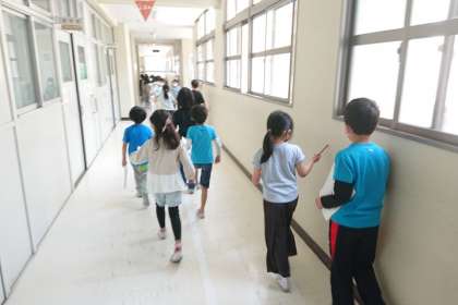 生活科の時間は、1年生に学校の案内をする前に、コースや案内の仕方を確認しました。