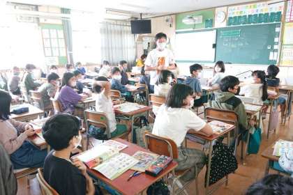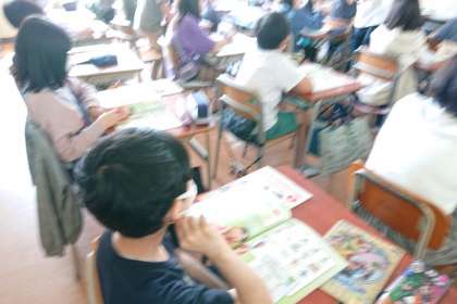 英語科の時間は、色やスポーツ、食べ物について、それぞれ何が好きかたずねあう英語の表現について学習しました。
